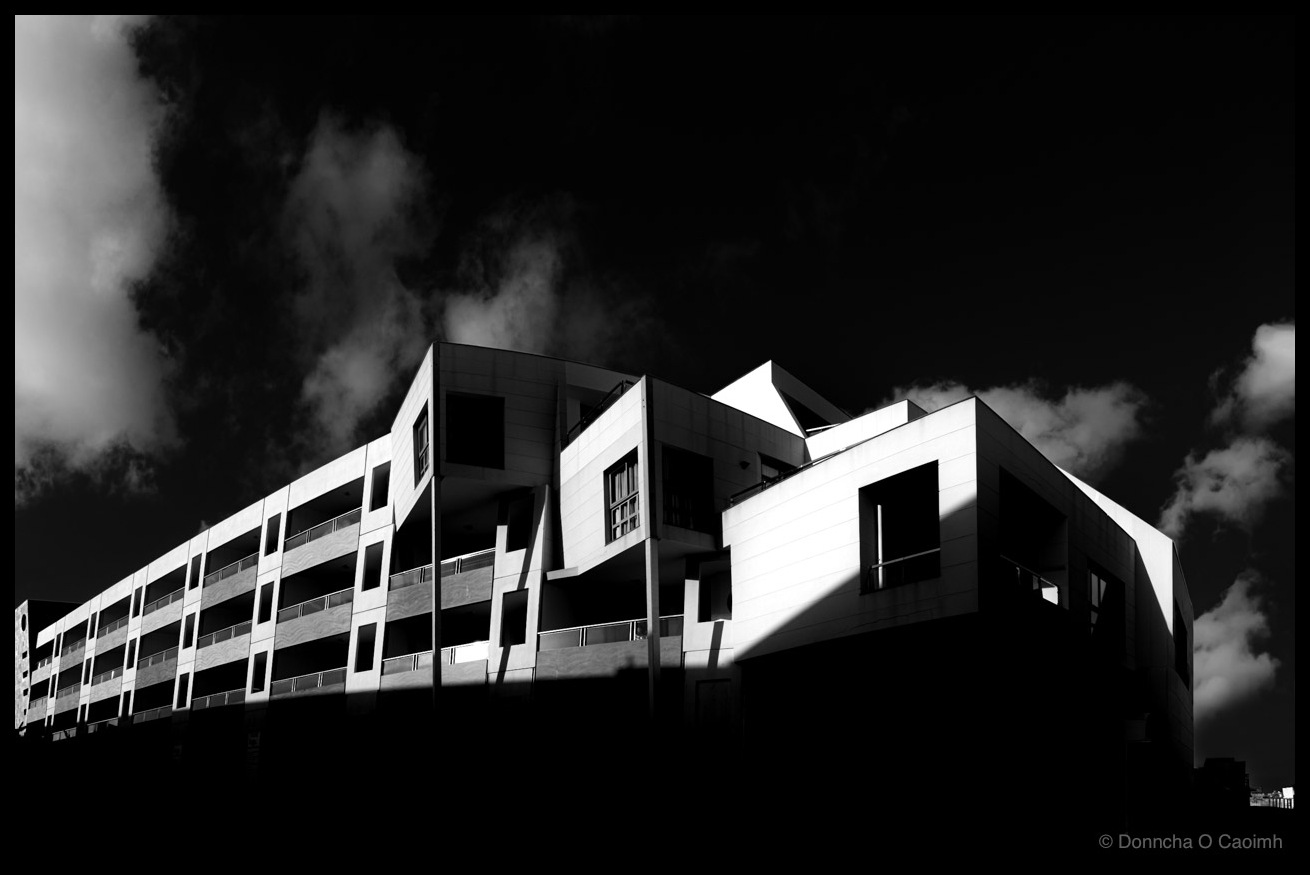 I was walking by the harbour in Castillo Caleta de Fuste, passing some shops and hotels when I saw yet another hotel but this one was vaguely interesting. It has some eye-catching lines, and the shadows of the hotel next door fell on it, hiding the lower levels.