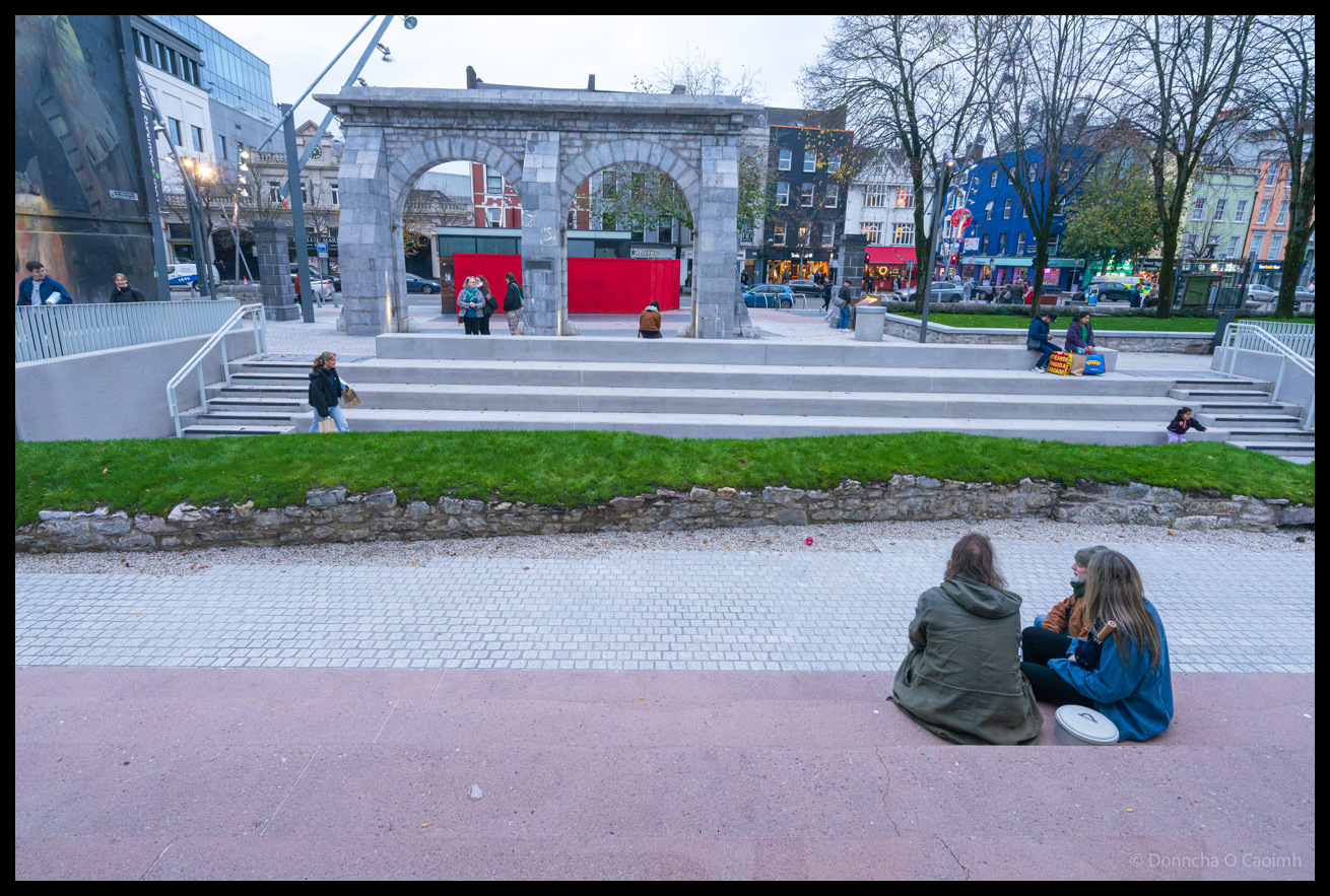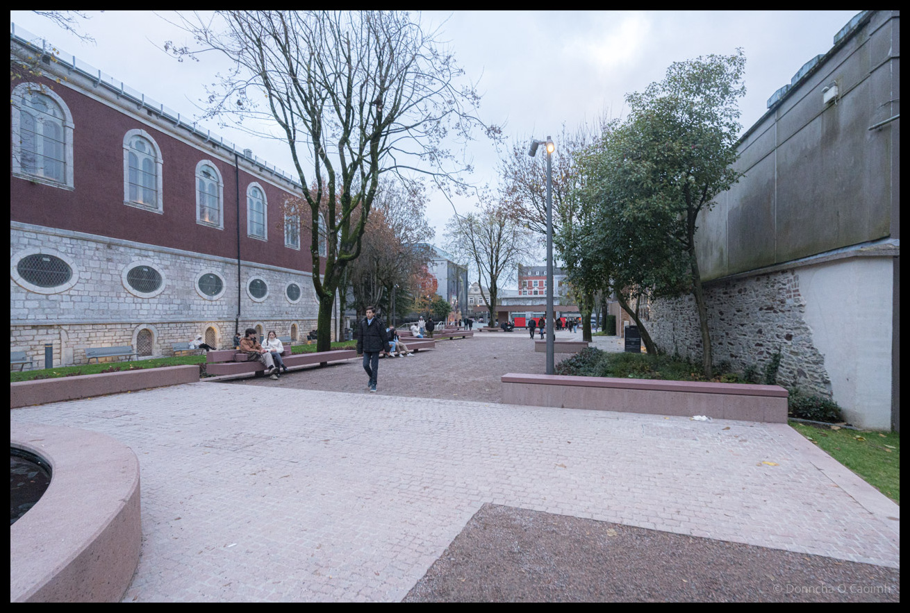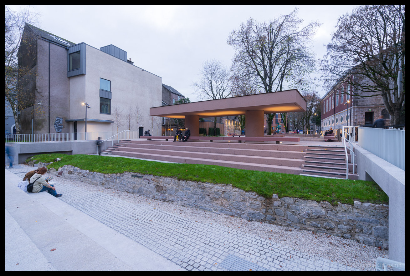 I’m not a big fan of brown, and there’s a lot of brown in the new Bishop Lucey Park. I do really like what they did with the old wall. That’s the slightly rough-looking grass bit in the second picture of my gallery. The old park had this cut off from the public behind railings, with stagnant water collecting at the bottom. Now, it’s an area where people can sit on steps and walk around.