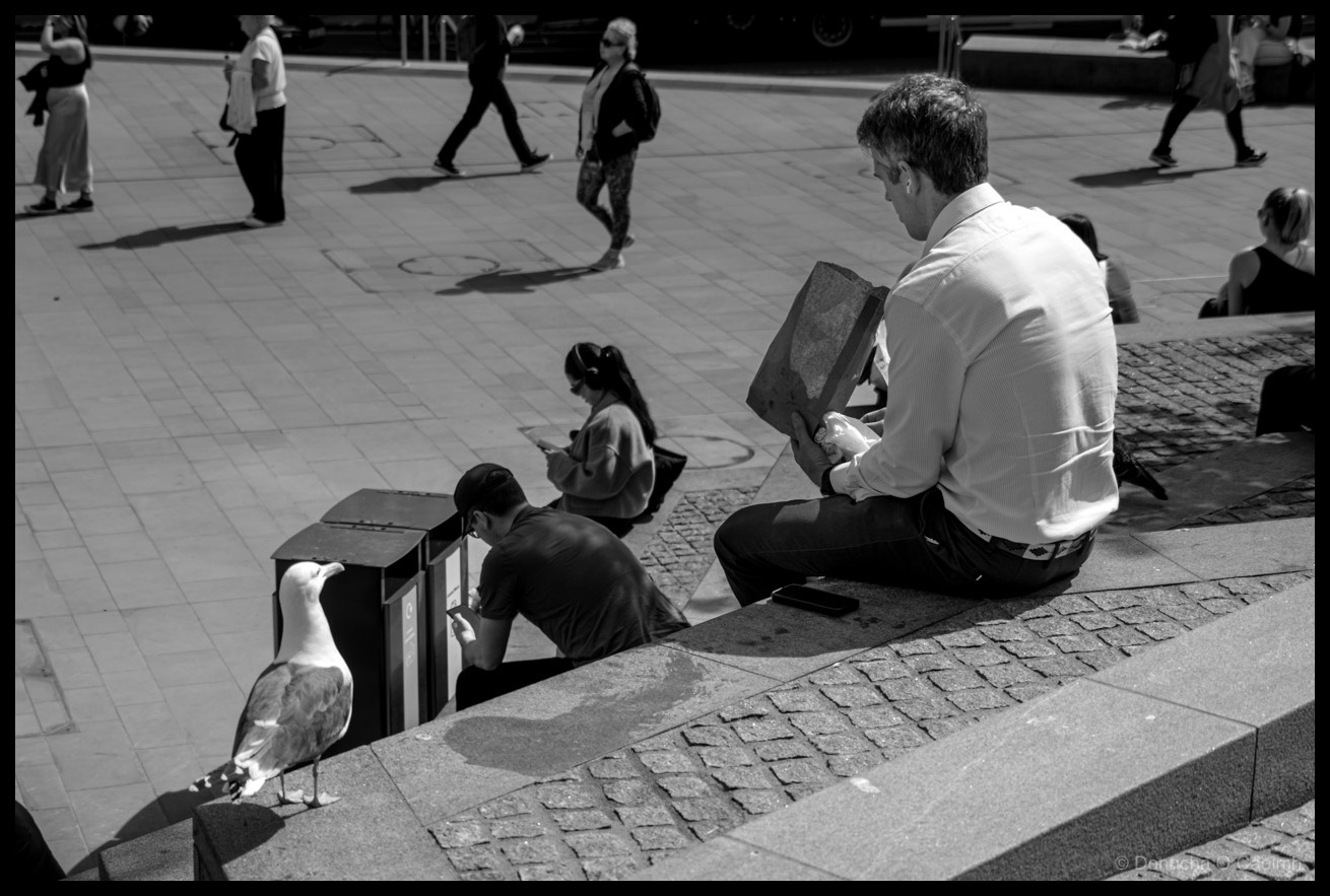 This seagull had his eye on that man’s lunch. I wonder if he got any crumbs. They have no fear!