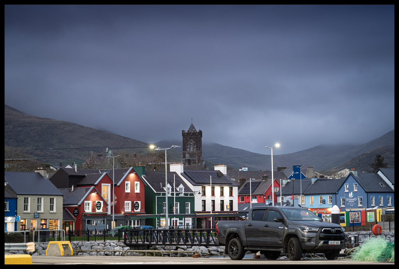 Low clouds lay over Dingle town on Friday evening but while it wasn’t the most exciting light, it had a lovely even light without deep shadows. It was a quiet evening with only a few people out walking their dogs and even a couple of tourists!