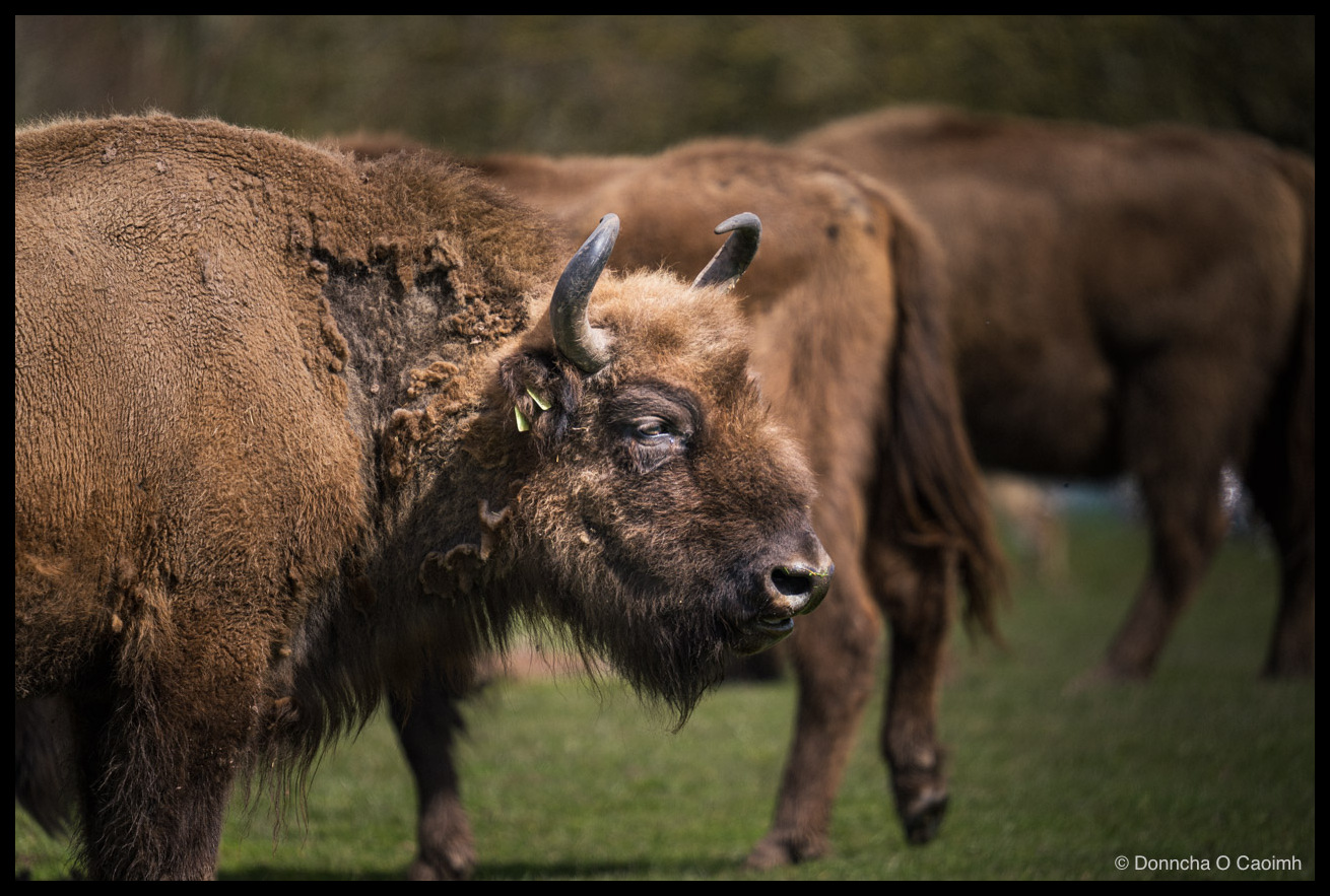 I didn’t know there were bison at Fota Wildlife Park, but near the end of my walk there with Henry we stopped at a field containing these large beasts!