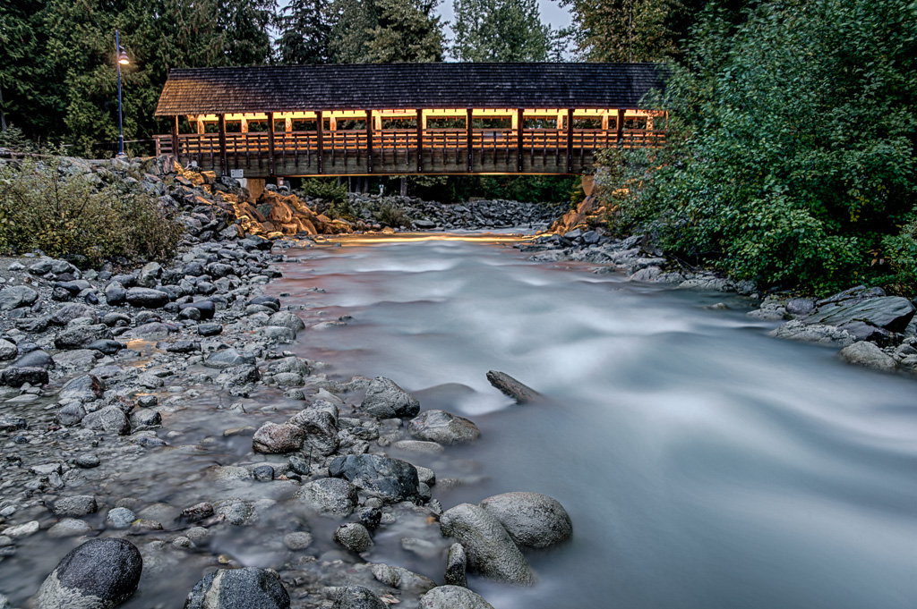 The Valley Trail Bridge over Fitzsimmons Creek, Whistler, BC, Canada.