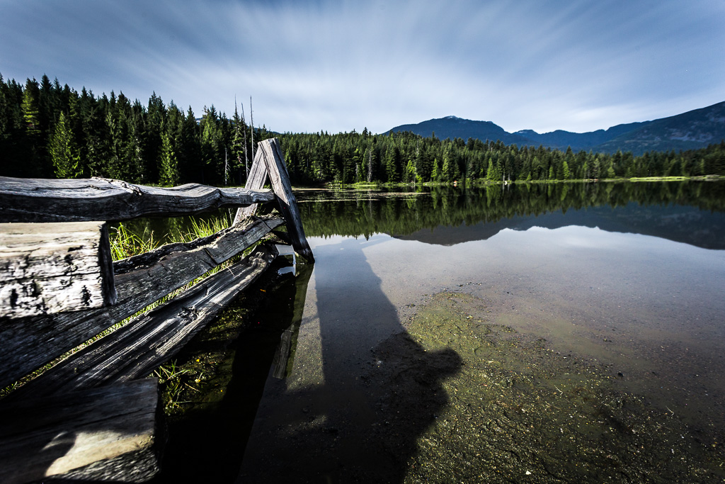 The Moon over Lost Lake, Canada. A long exposure shot with a series of quick movements of the camera to draw a W for WordPress, of course.