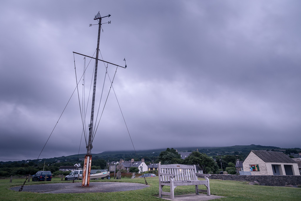 A small boat hidden in the long grass and trees besides the river in Newport, Wales.