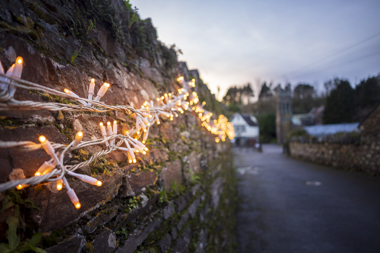 Christmas lights line a wall heading to Abbeystrewry Church in Skibereen, Co Cork. Brightening up a dull, overcast, day with a cheery glow.